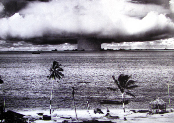 El 1 de marzo de 1954 estos tranquilos islotes del atolón de bikini en el archipiélago de las Marshall creen que será un día cualquiera... pero la primera bomba de hidrógeno lanzada por USA como un ensayo nuclear deja un siniestro espectáculo: